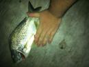 | This fish was a huge fight weighing just under 2 KG, I caught it on a fresh real of carbon fishing line.. I highly recommend using carbon fishing line, even though it's about 50 bucks per spin, the distance when casting is superior to mono line and casts really well, however since the line is unbreakable, It's best to just have a standard mono line for the trace - about 2 ft from the swivel to the hook. |