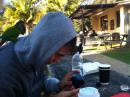 After the surf, Jasper welcomed me to come for a hot cup of coffee at his favorite cafe, and whilst sipping away, some other birds saw Lucky "My little tag along parrot' and felt safe, so then joined the conversation.